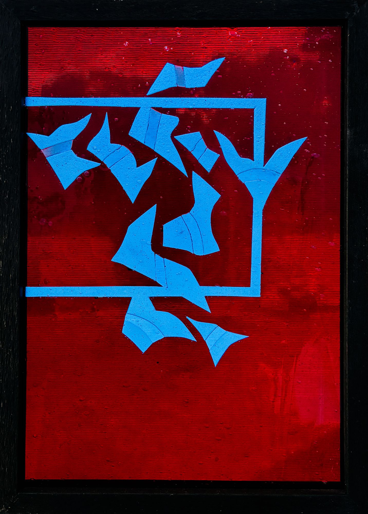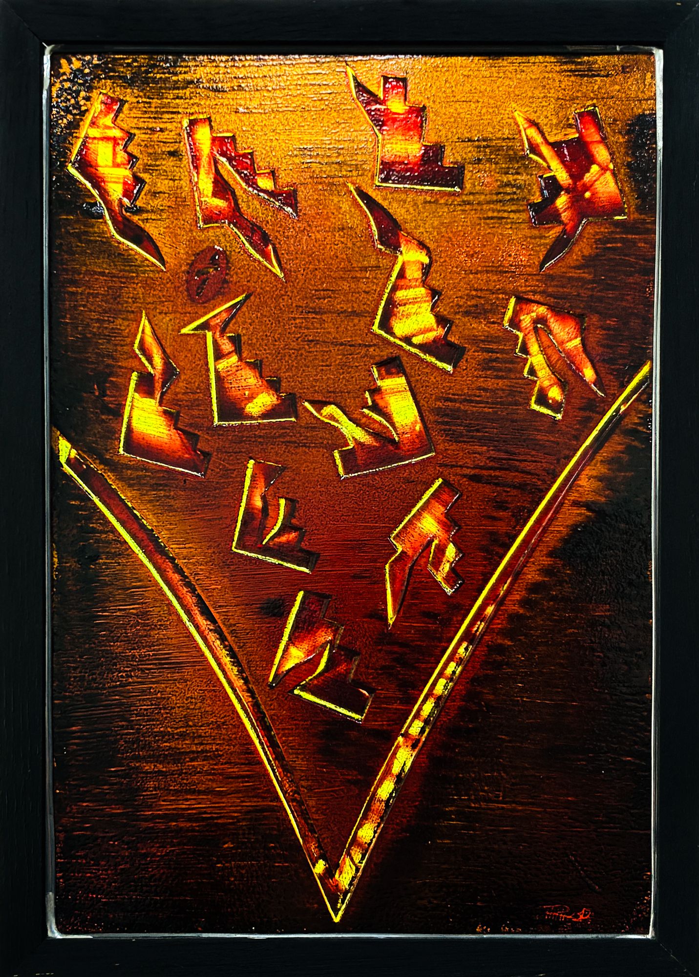 „Vibráció”, üvegablak, 2023, anyaga: festett üveg, mérete: 25×17 cm