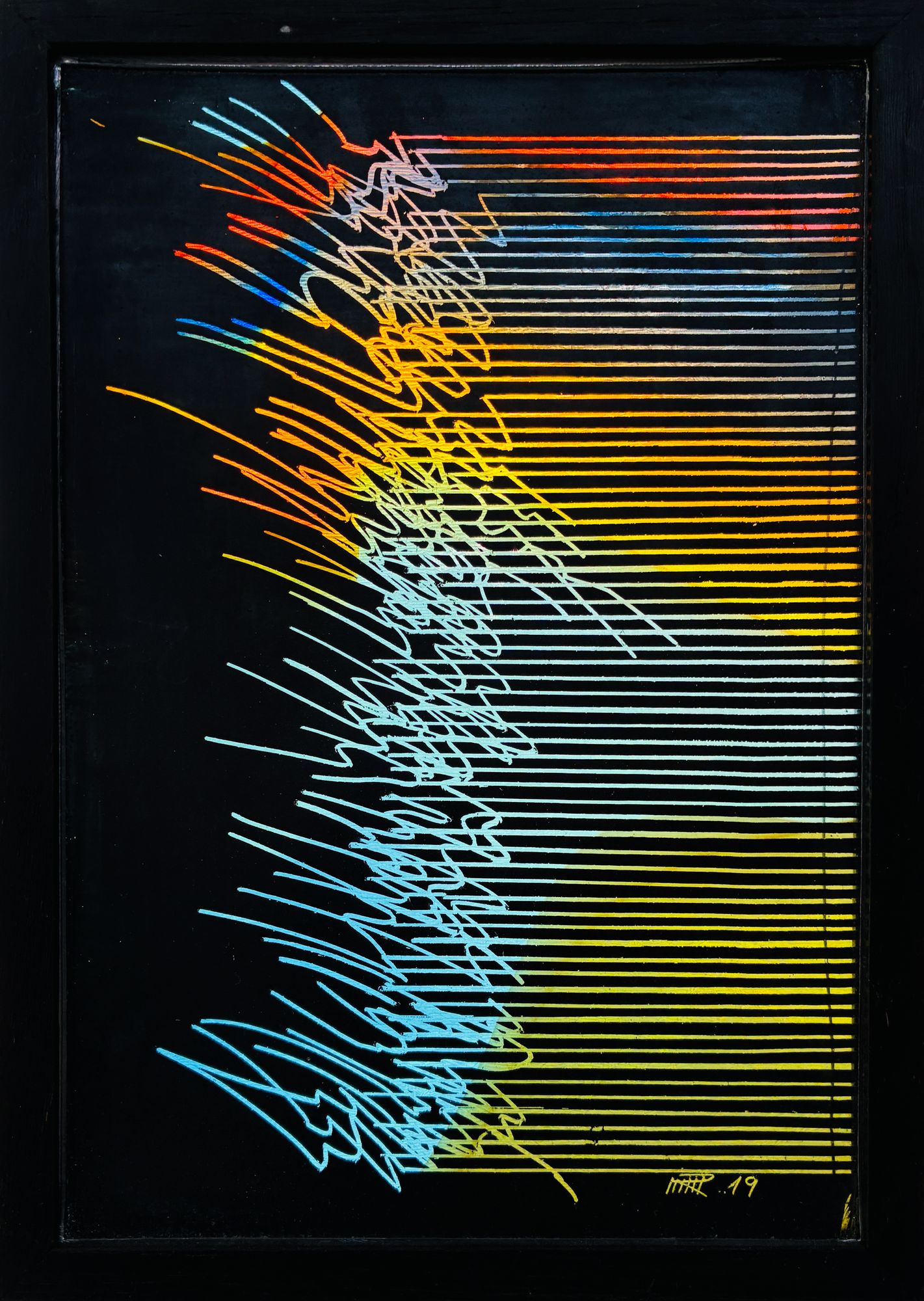 „Erőtér”, 2018, színes, festett üveg 60×40 cm